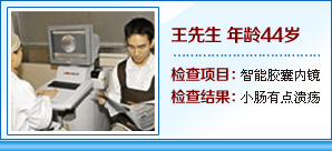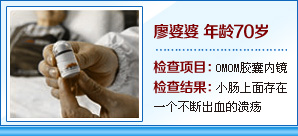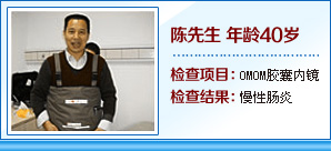 陈先生一直有慢性腹痛、腹泻、腹胀等症状,女儿要我做一个消化道的健康检查。因为之前做的是传统插管式胃肠镜检查,在检查的时候又是恶心、呕吐、又是腹痛,还听说,这种检查即使麻醉,仍易造成消化道刮伤及交叉感染,所以,我再也不敢做类似的检查了。但是此次医生给我做的"OMOM胶囊内镜"检查,像服药一样用水将胶囊吞下,检查过程中一点也不痛苦,同时也不影响饮食,工作,生活起居等。
